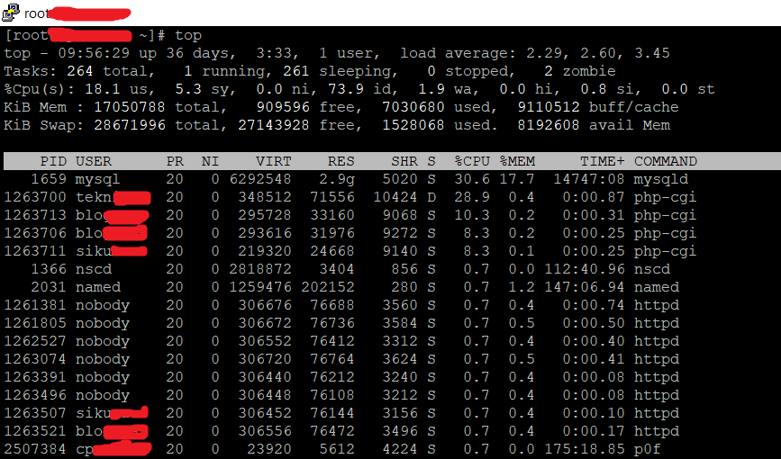 Rata-rata beban systen (load average: 2.29, 2.60, 3.45)