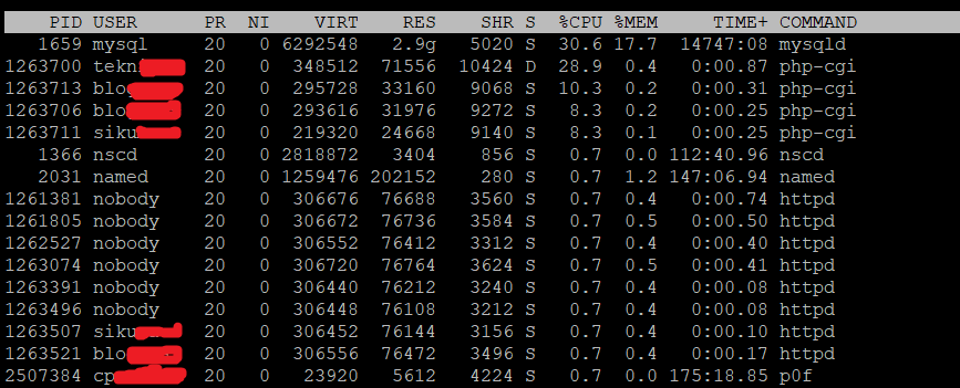 Oh ya, perintah TOP ini sangat bermanfaat dan sering digunakan jika di dalam server linux kamu terdapat beberapa website. Ketika salah satu website di server tersebut DOWN, kita bisa memantau website mana yang DOWN, apakah karena murni Traffic pengunjung atau di DDOS, atau ada IP yang SPAMMING ke website kita.